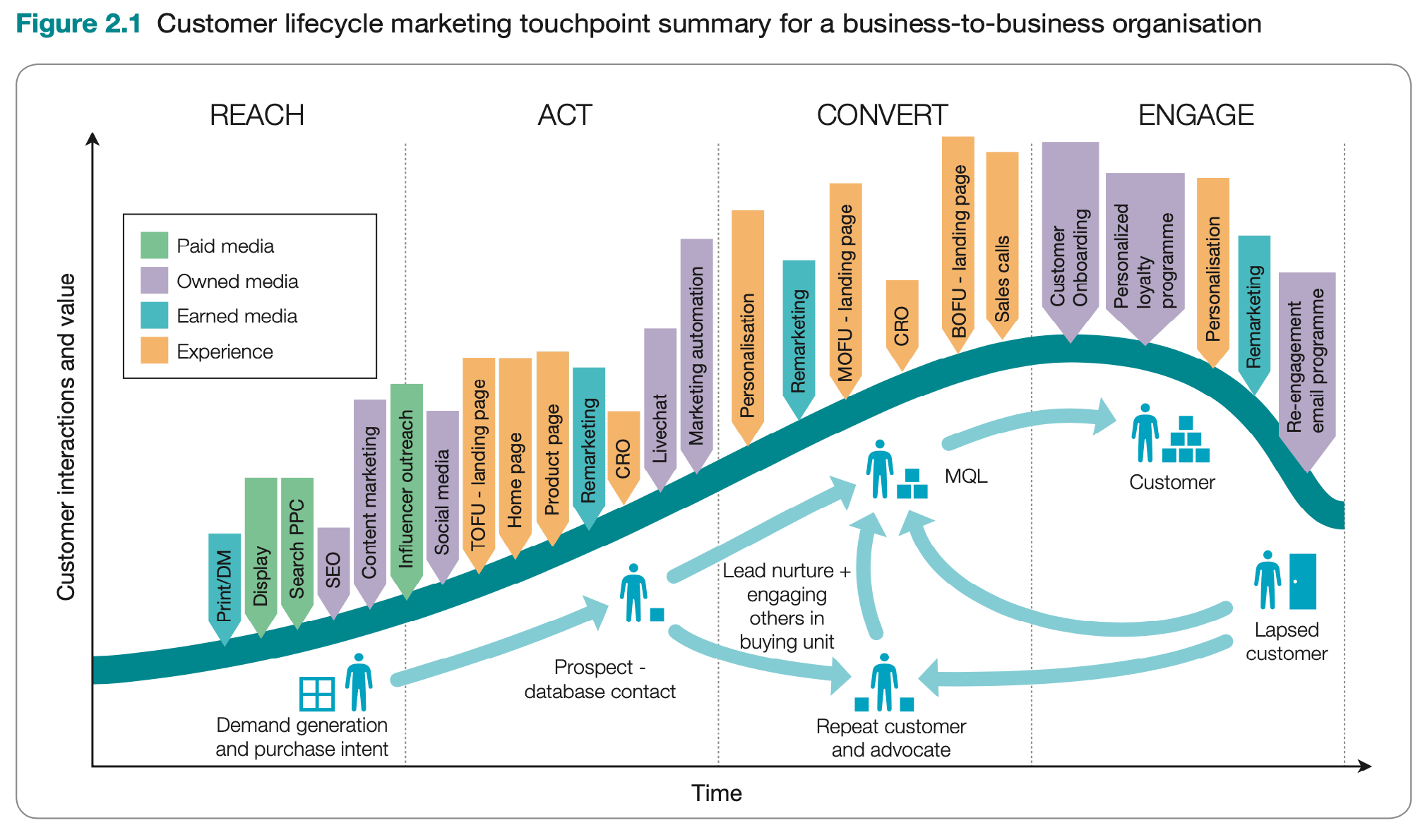 Smart Insights developed our RACE Marketing planning framework so that it works equally in B2B and B2C markets. This is the case since it integrates your customers' digital experiences interacting with brands across Reach, Act, Convert and Engage - the full customer journey. You can download our free digital marketing plan template to find out more.